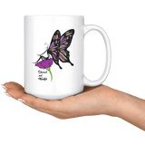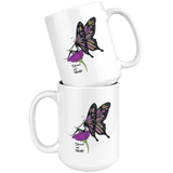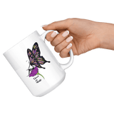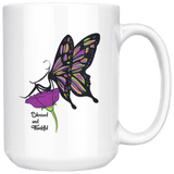 Enjoy your favorite beverage with this beautiful mug featuring a butterfly poised in joy on a flower with the sentiment, "Blessed and Thankful". Soon to be your favorite go-to, this mug will not disappoint. A THB original designed to brighten your day and help you celebrate being blessed and thankful! This listing is for one 15 oz mug.