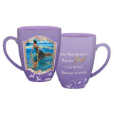 Enjoy your favorite beverage in this beautiful 15 oz mug from African American Expressions. This stunning mug is inscribed with the words, “She who kneels before God can stand before anyone.”