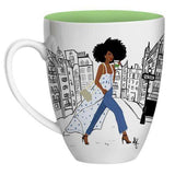 Enjoy your favorite beverage in this stylish mug featuring a beautiful and classy woman stepping with purpose in heels while sporting her natural tresses in a Parisian setting. Bearing the words, ”Keepin’ It Moving,” this mug makes a great gift for the woman who knows her value and walks in purpose.