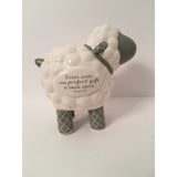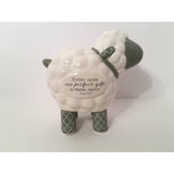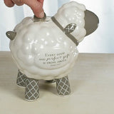 A lovely alternative to the traditional "Piggy Bank", this adorable little ceramic Lamb Bank is a perfect gift for newborns, toddlers, and parents who want to start a savings for their precious little one. It features a coin slot on top, rubber stopped opening in bottom. Inscribed with words of James 1:17: "Every good and perfect gift is from above". 7" x 7" x 5".