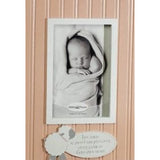 This precious pink 4" x 6" vertical photo frame is a great addition to any nursery. Inscription on the lamb reads, "Tiny child so sweet and precious, little lamb of God's own heart". This beautiful frame is complete with its easel back. Holds 4" x 6" photo. Total size of frame is 7" by 10".