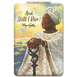 Perfect when you're on the go, the dual purpose mirror provides the standard true view image as well as 2x magnificaton for close up application. This design is adorned with the beautiful art of Keith Conner. The late Dr. Maya Angelou glows in this skillfulful portrayal and is perfectly accompanied by her inspiring words, "And Still I Rise."