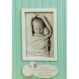 This adorable aqua blue 4" x 6" vertical photo frame is a great addition to any nursery. Inscription on the lamb reads, "Tiny child so sweet and precious, little lamb of God's own heart". This beautiful frame is complete with its easel back. Holds 4" x 6" photo. Total size of frame is 7" by 10".