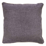 is embroidered in taupe to complement the piping that runs around the edges of the square pillow.