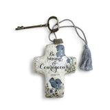 - Cross sculpture in joyful design features uplifting message from Joshua 1:9: "Be strong and courageous.”